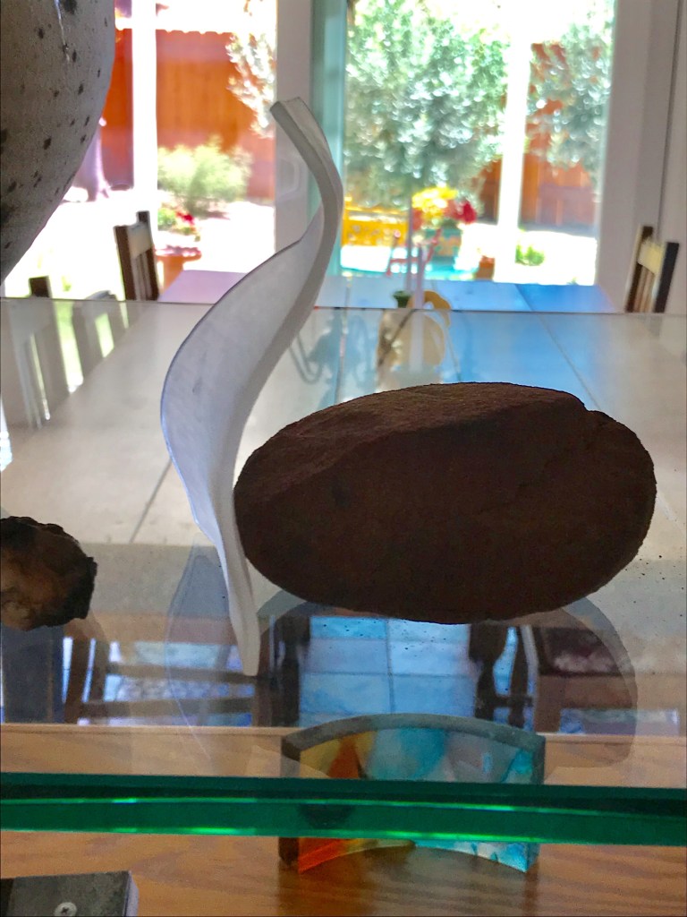 When I returned home, I wanted to continue exploring this idea of responding to stone with glass. I asked several friends whose homes were lost or damaged in the Thomas Fire if I could have some burnt stones from their property, letting my friends know I wanted to create something with these stones.